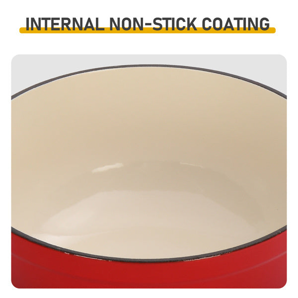 Double-layer enamel process on both the inside and outside, with a high-gloss finish on the exterior and a non-stick design enamel layer (the non-stick enamel layer resists stubborn stains).