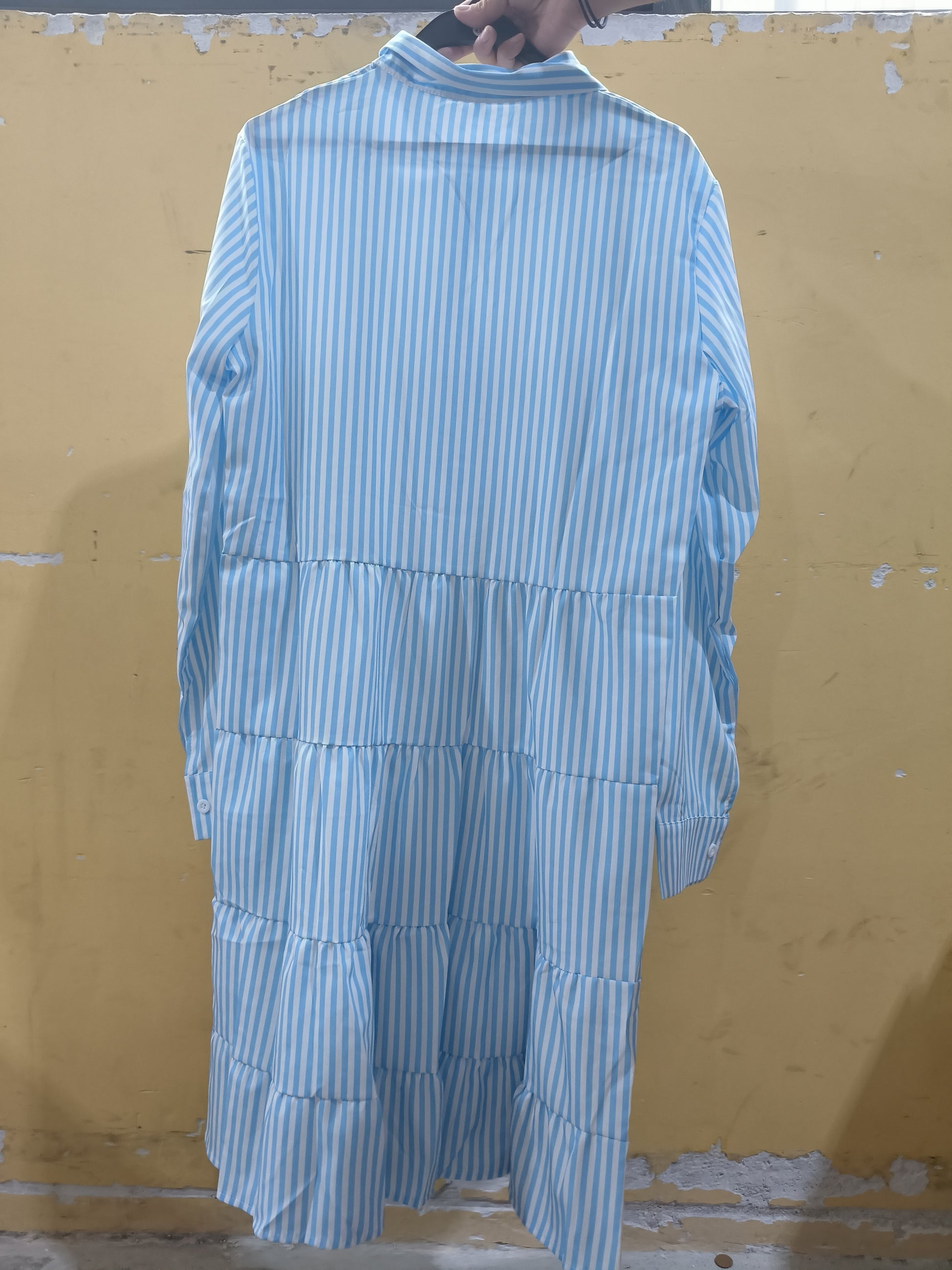 Ins Striped Long-sleeved Shirt Dress Fashion Lapel Button Dresses For Women